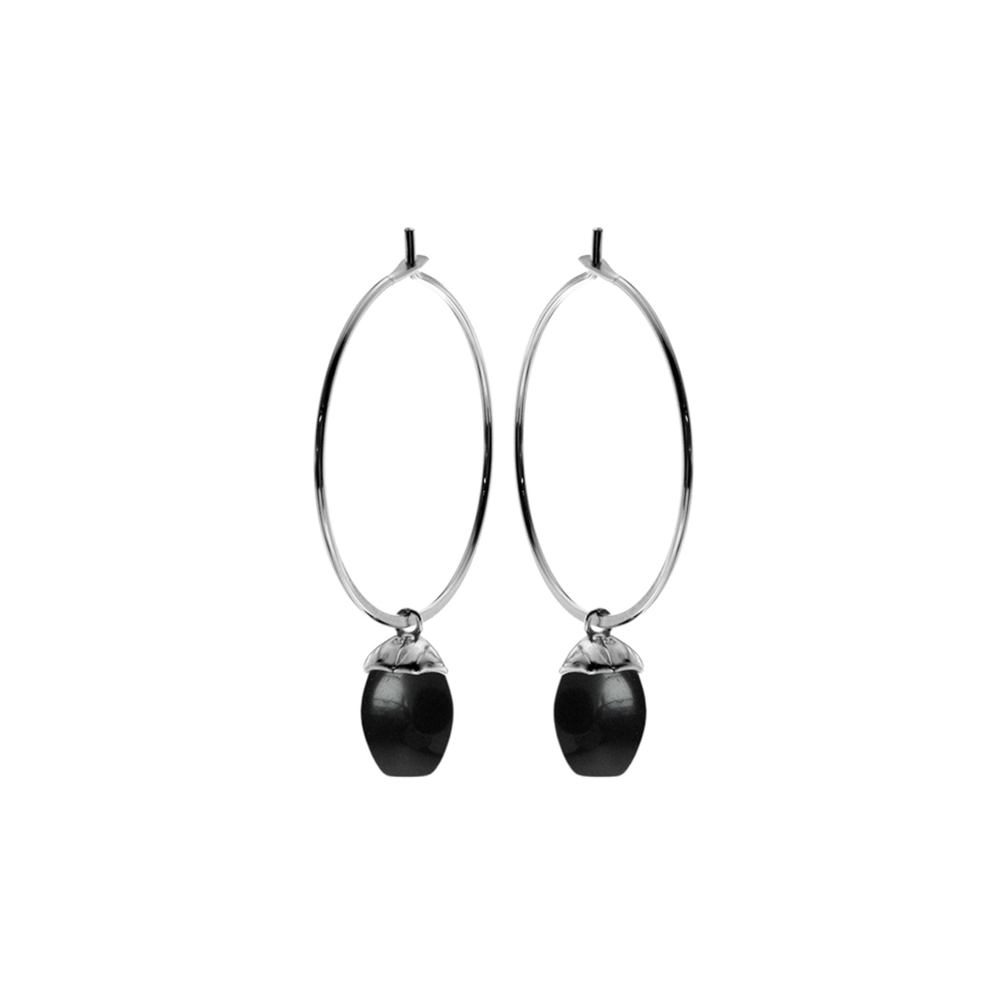 28mm Silver hoop earrings with suspended black onyx