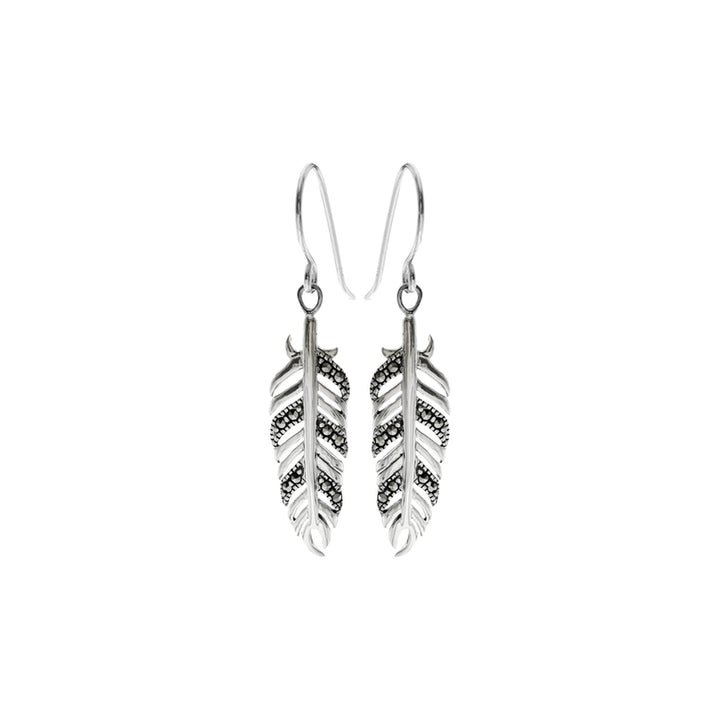 Silver feather earrings with marcasite details