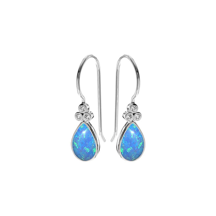 Teardrop blue opalique and triple cubic zirconia 925 silver earrings