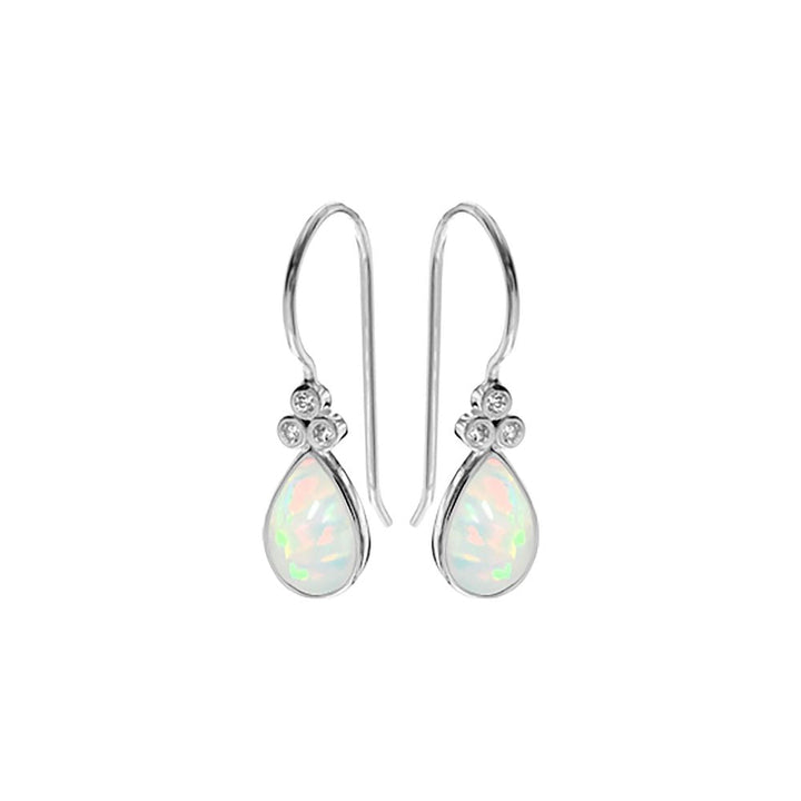Teardrop white opalique and triple cubic zirconia 925 silver earrings