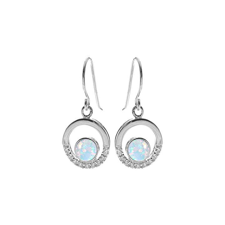 Half cubic zirconia set 925 silver circle white opalique earrings