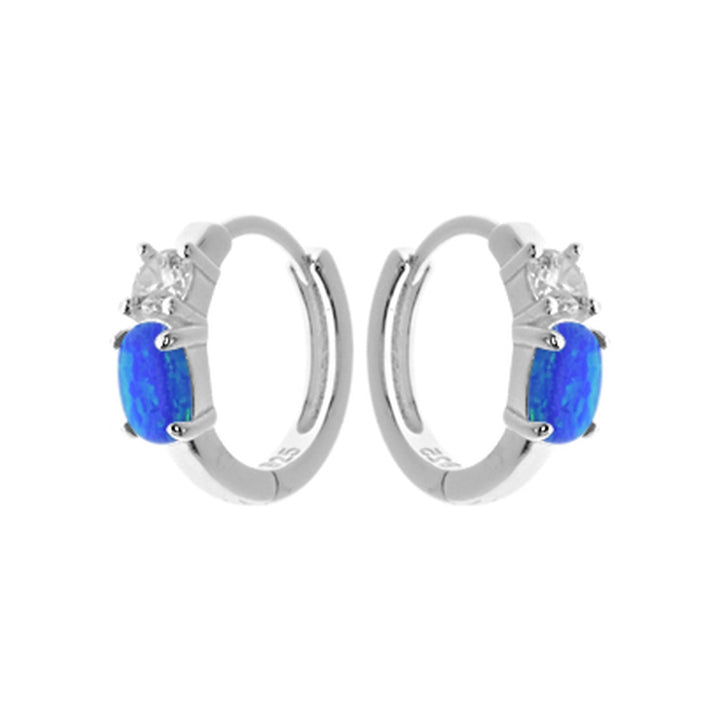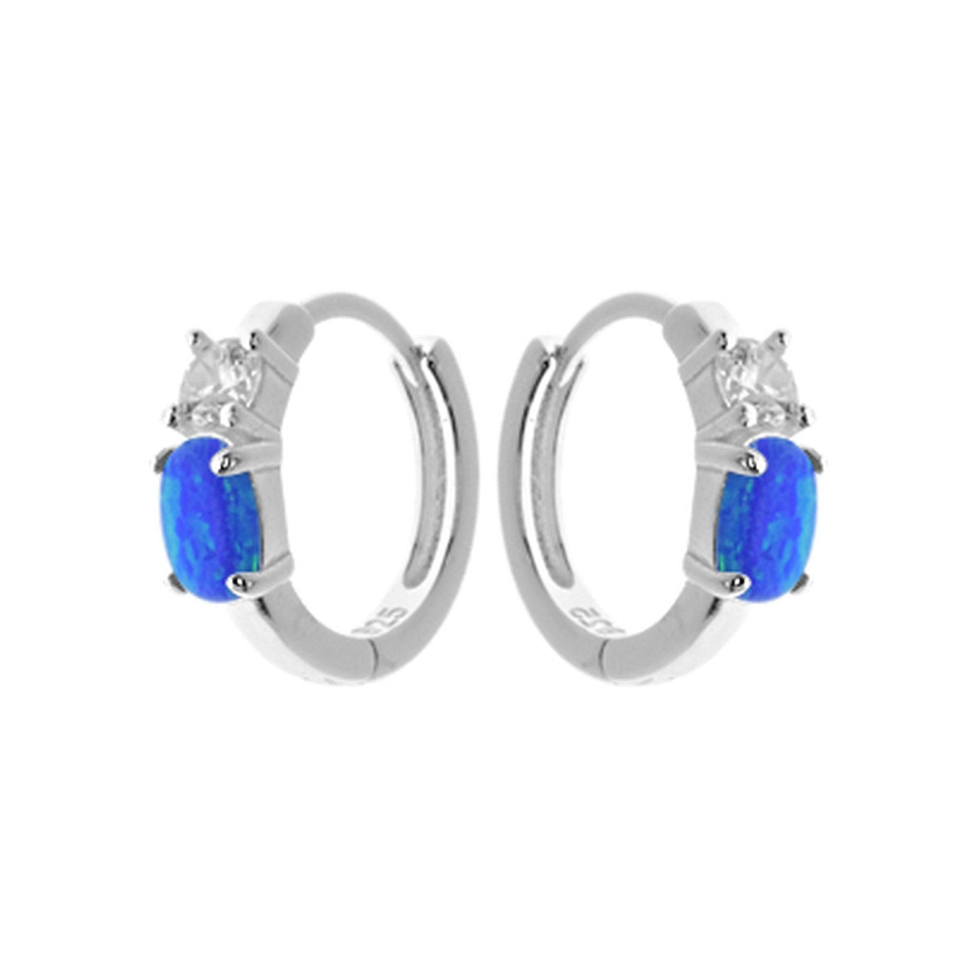 Silver sleepers with blue opalique oval and cubic zirconia