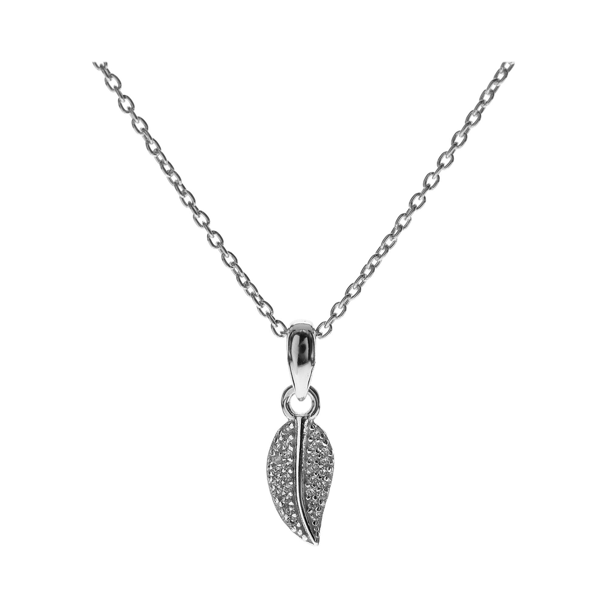 Cubic zirconia micro-set silver leaf and chain necklet (18inch)
