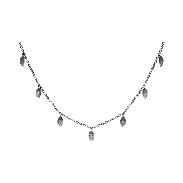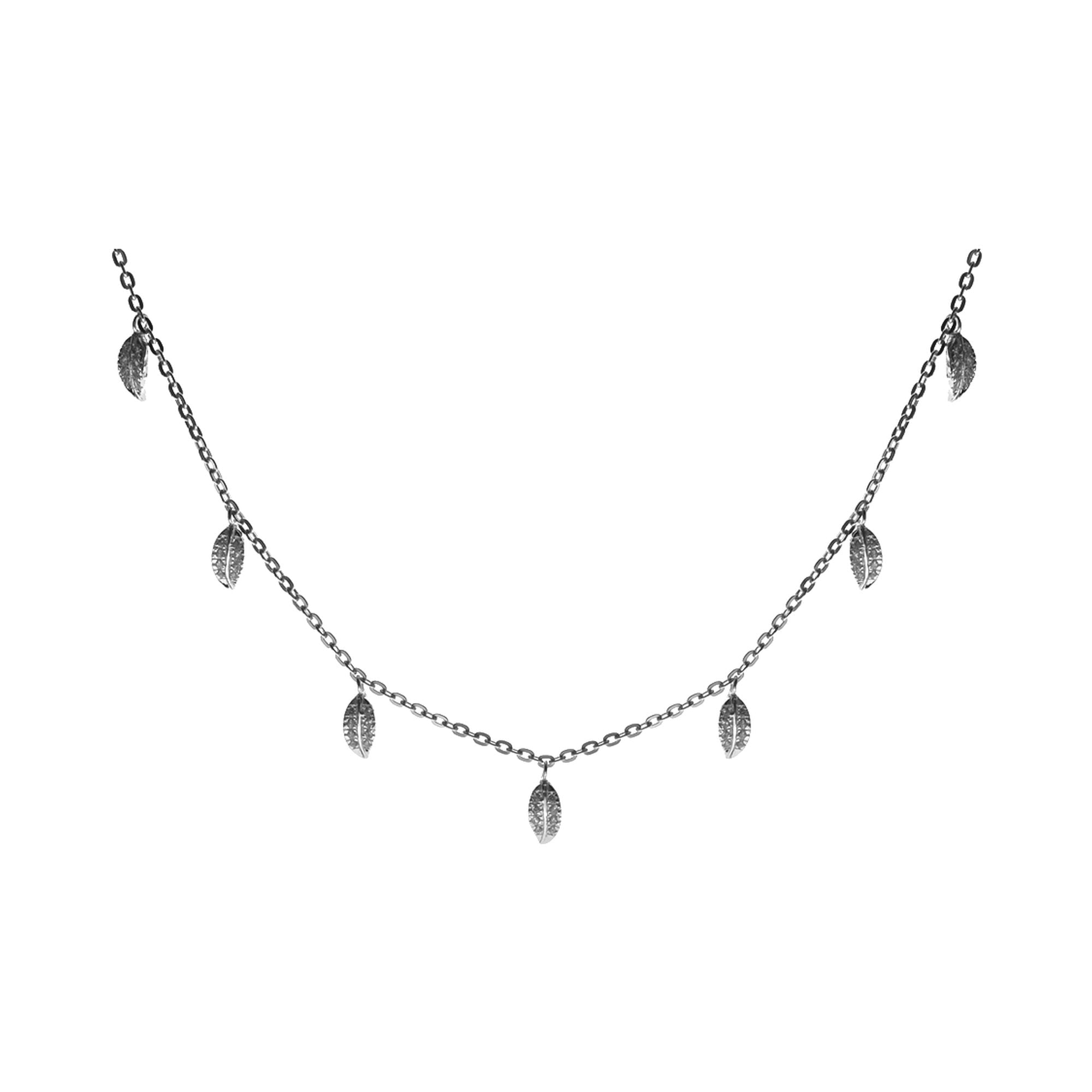 Silver chain necklace with cubic zirconia set silver leaf detail