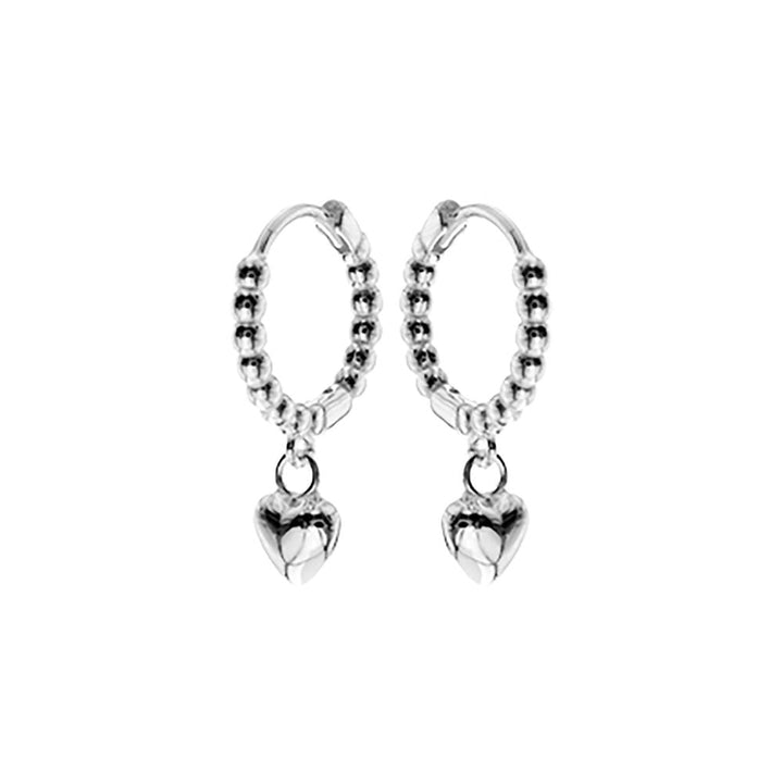 10mm bobble design silver hoops heart charms