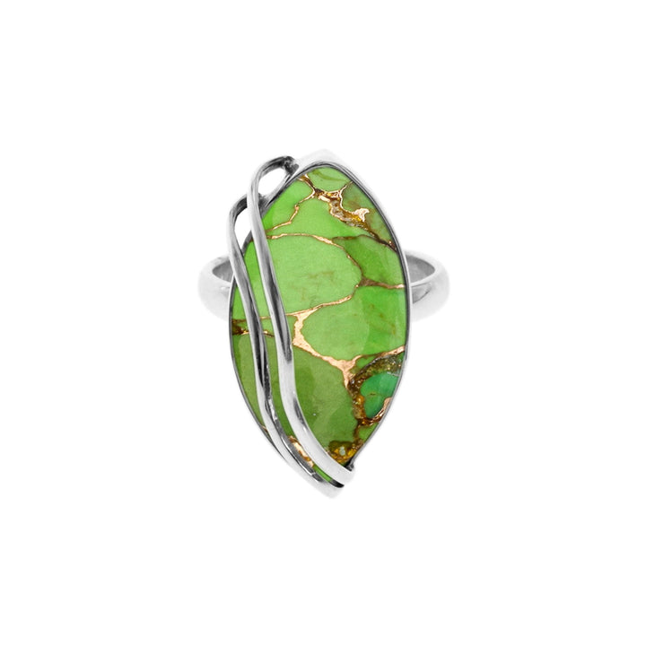 Marquis green mohave turquoise with double strand wire overlay ring