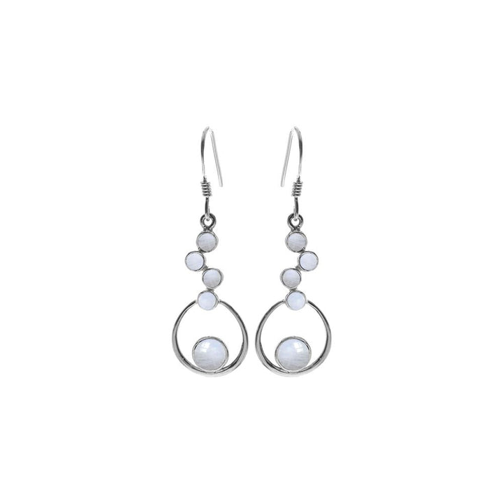 Staggered rainbow moonstone and silver hoop setting