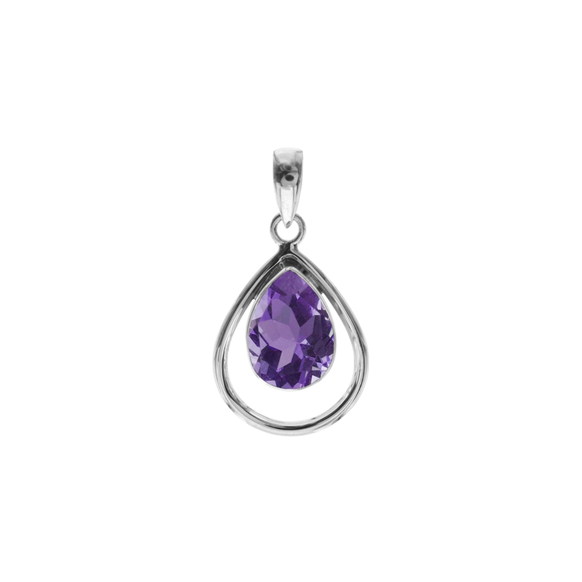 Amethyst facet teardrop in open teardrop pendant
