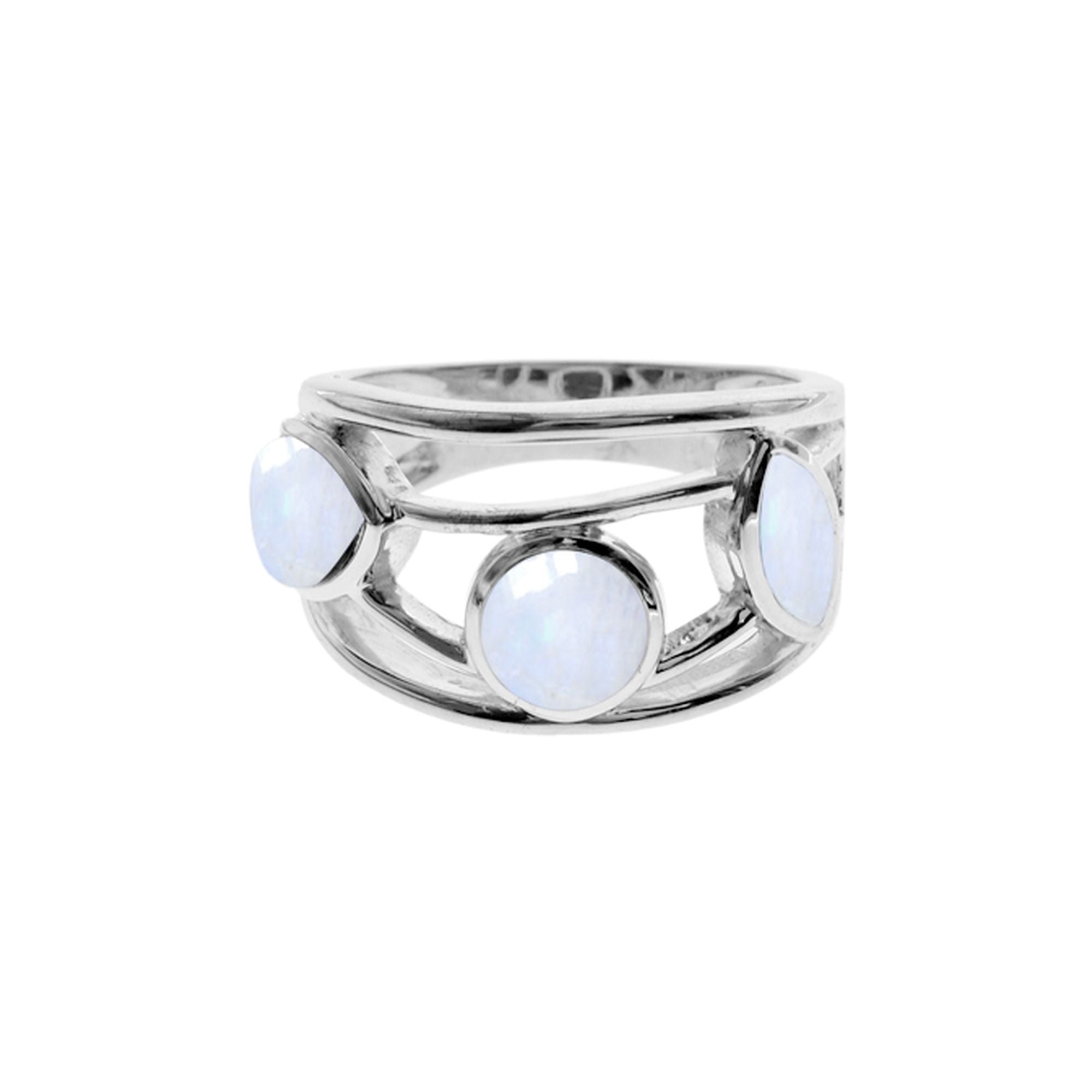 Trillion-cut, round and marquis rainbow moonstone silver ring