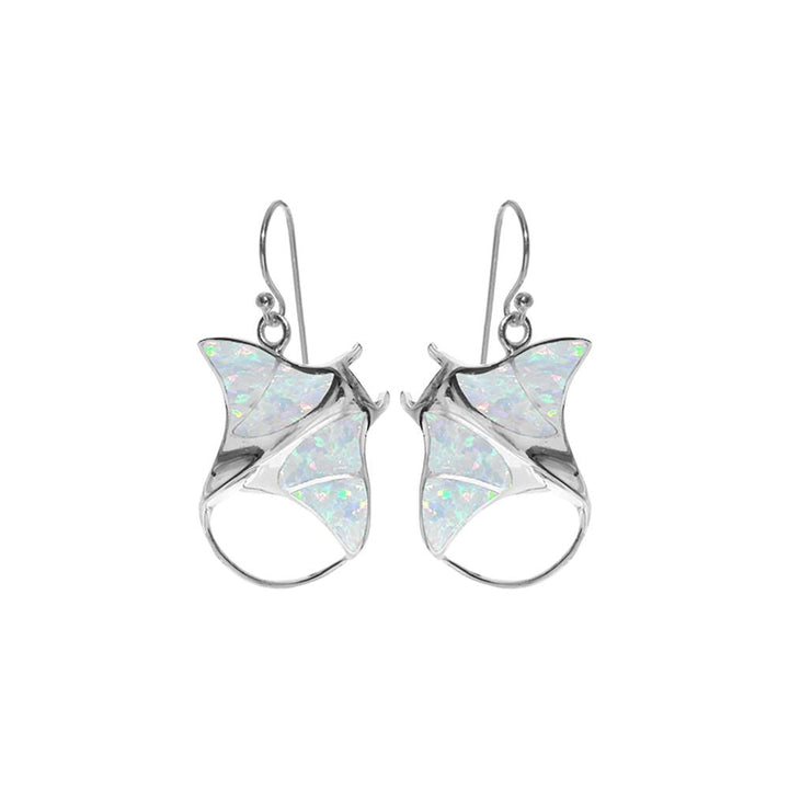 Silver and white opalique manta ray earrings