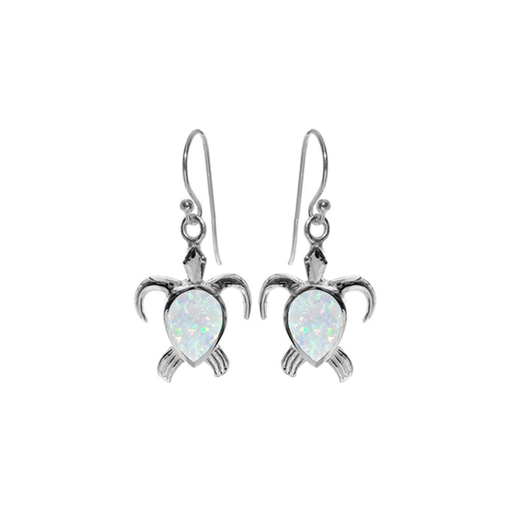 Silver and white opalique turtle earrings