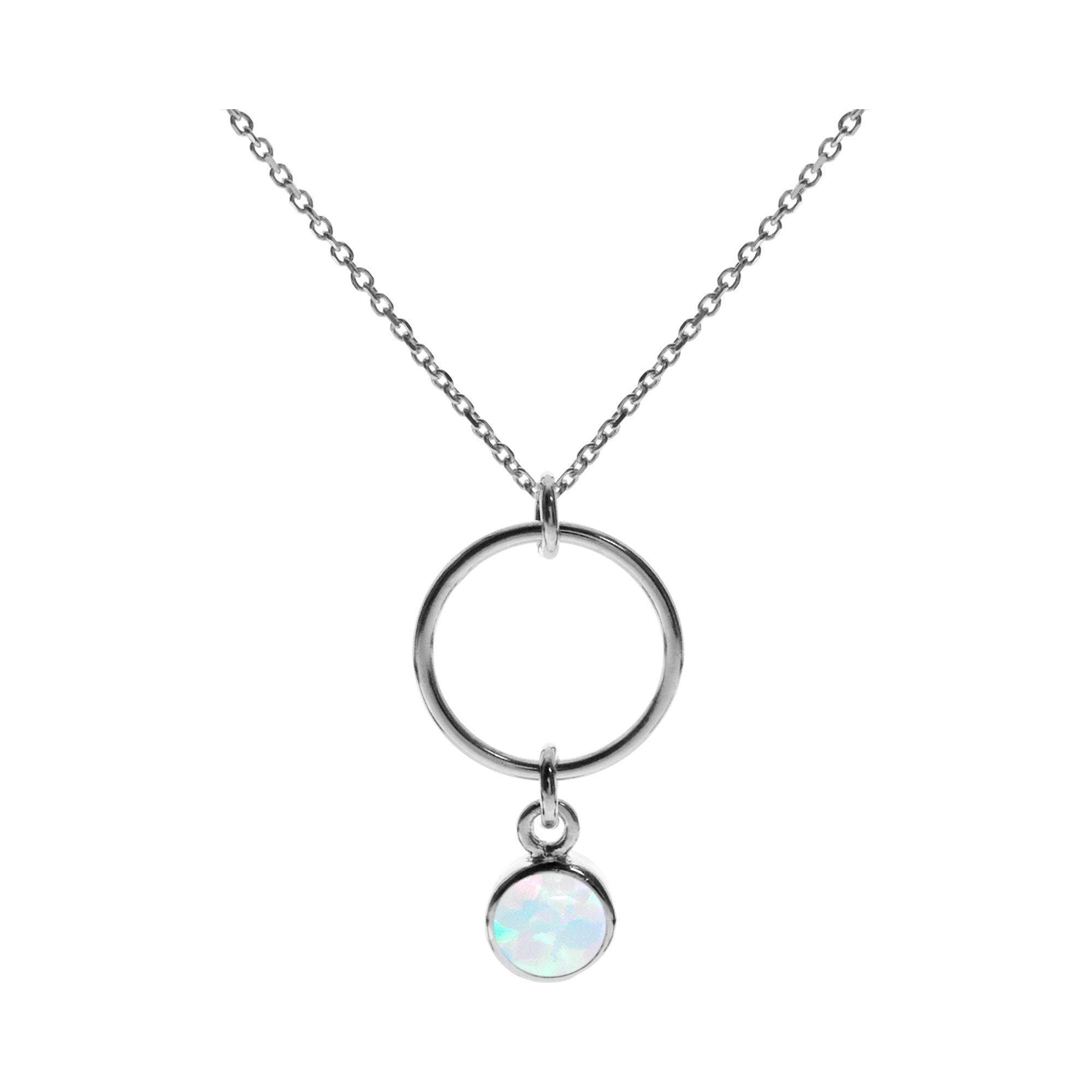 Silver loop and drop white opalique necklace