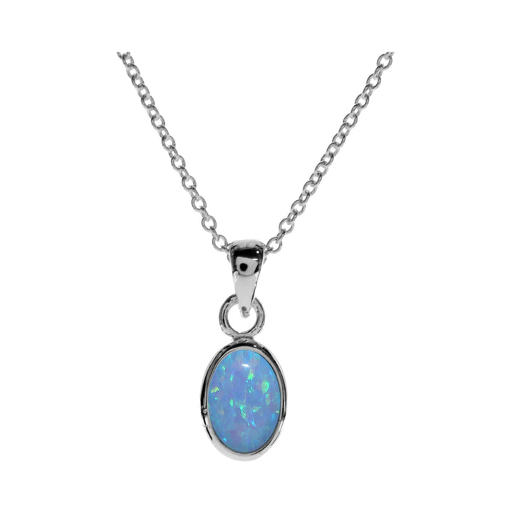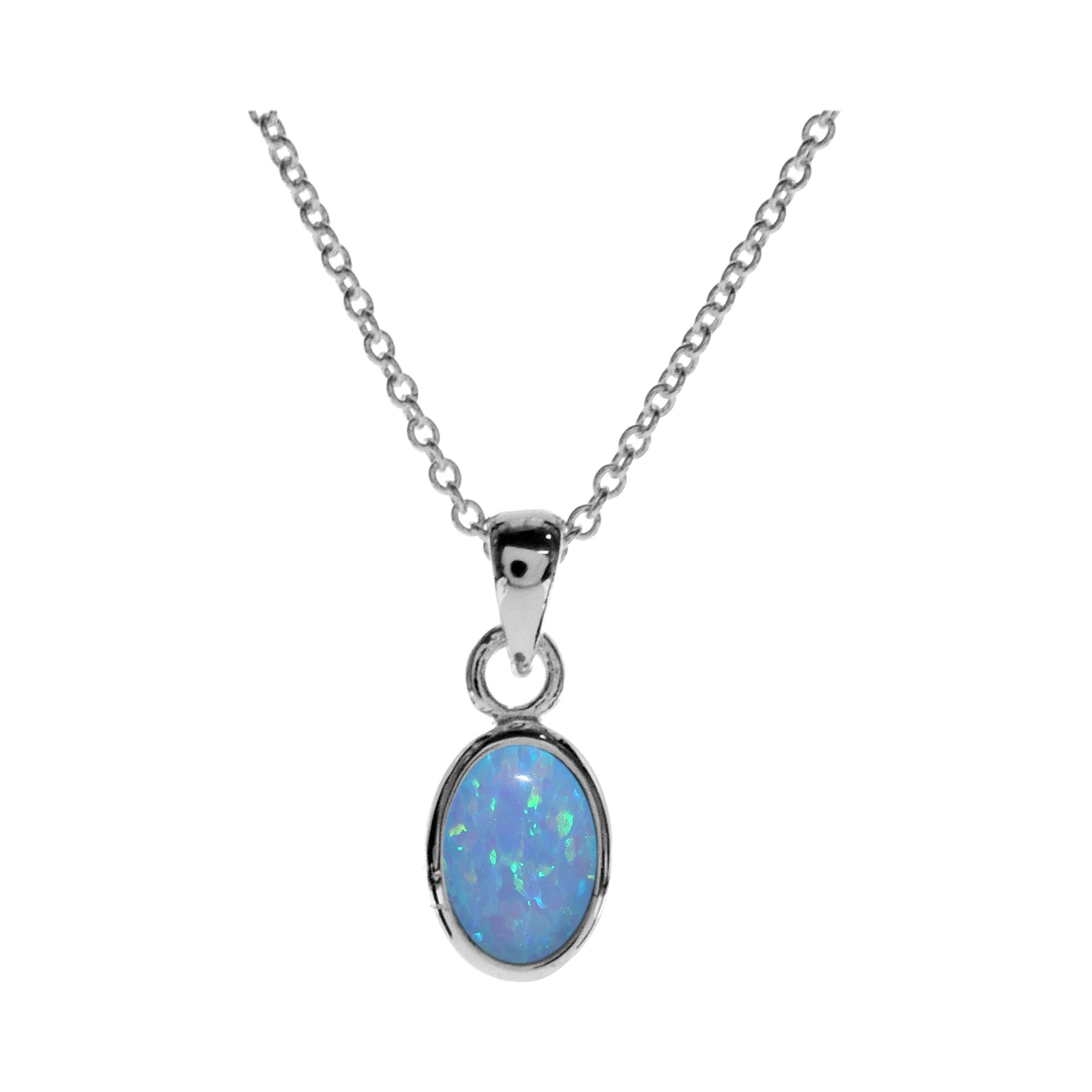 4x6mm plain oval blue opalique pendant and 925 silver chain
