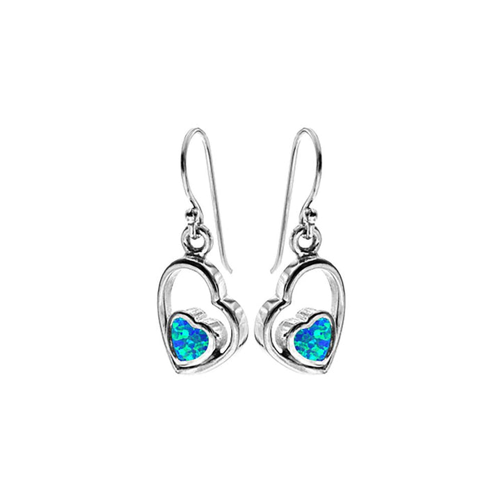 Offset silver and blue opalique heart earrings