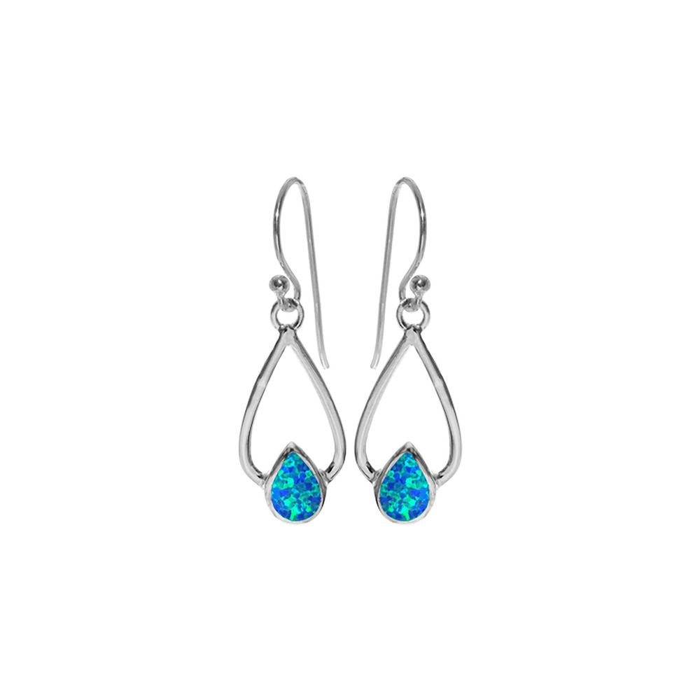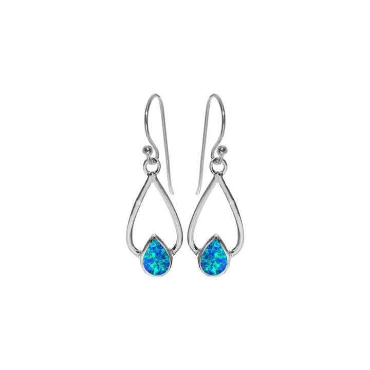 Blue opalique teardrop in open teardrop earrings