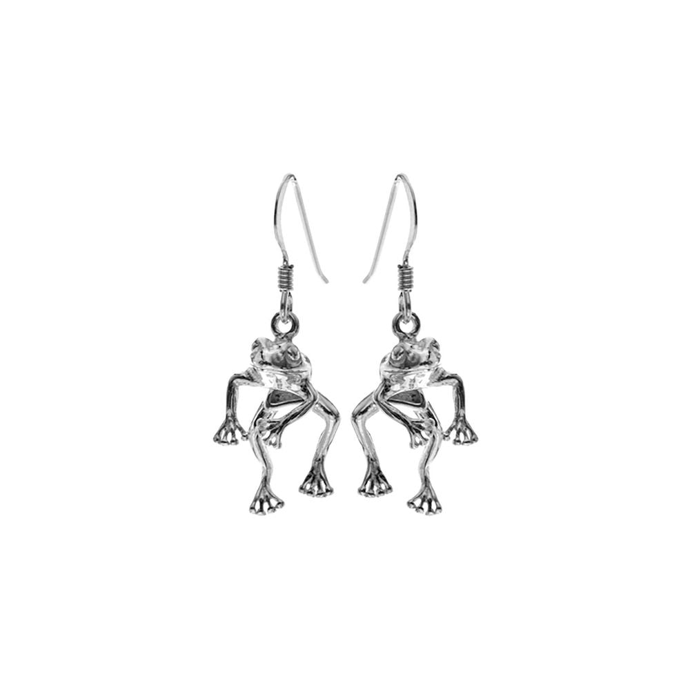 925 silver moving hanging frog earrings