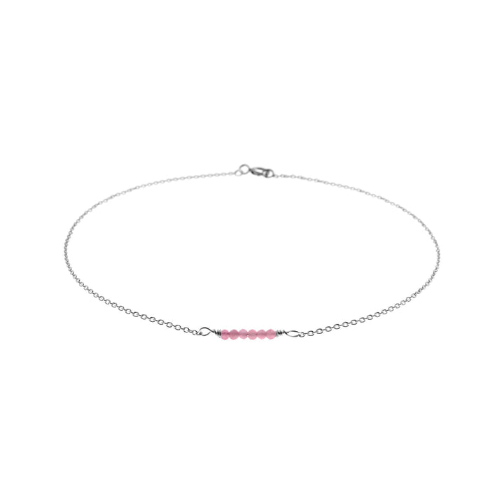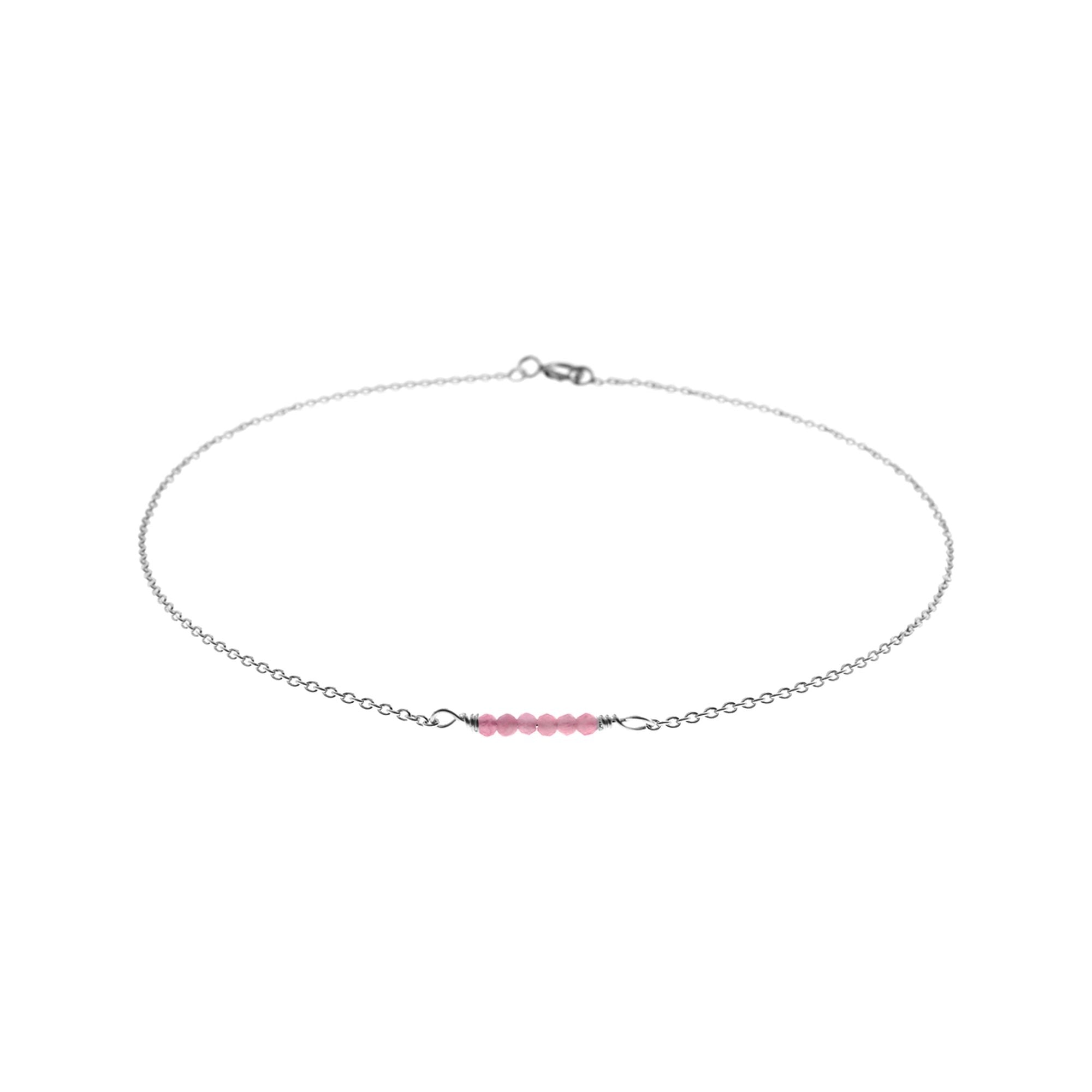 Dainty silver chain anklet with centred faceted pink tourmaline beads