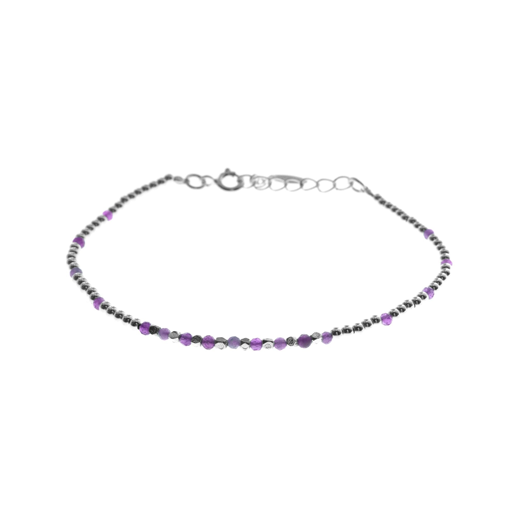 Fine multi patterned amethyst and silver bead clasped bracelet