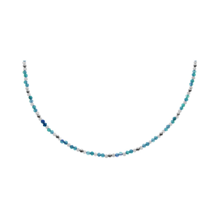 Apatite and rainbow moonstone with silver bead necklace