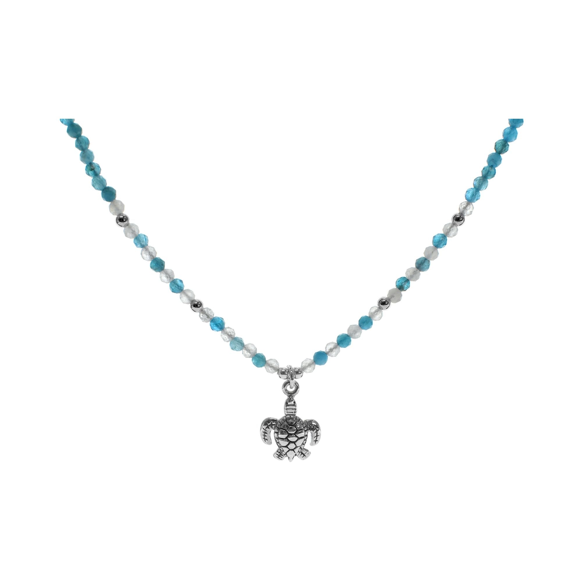 Apatite and rainbow moonstone and silver necklace w. turtle
