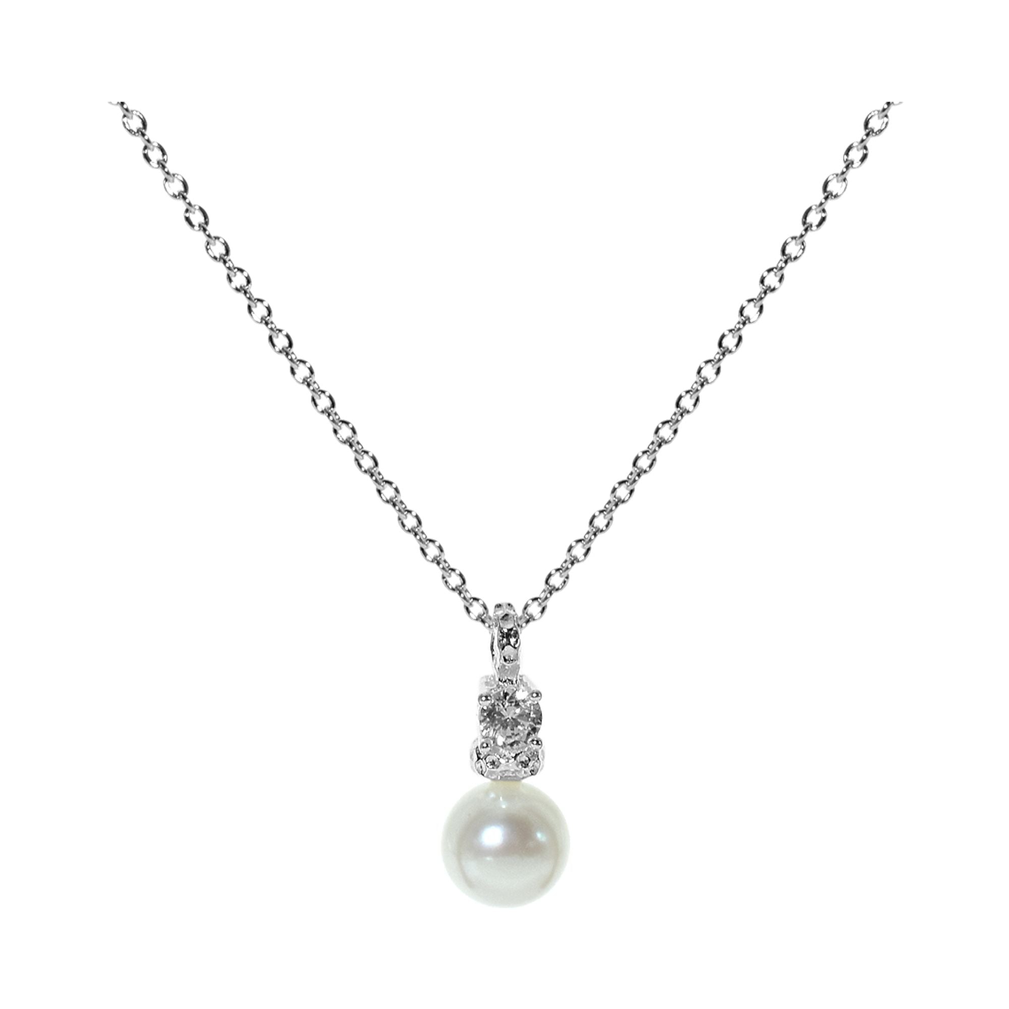 Fine silver chain with freshwater pearl and cubic zirconia pendant