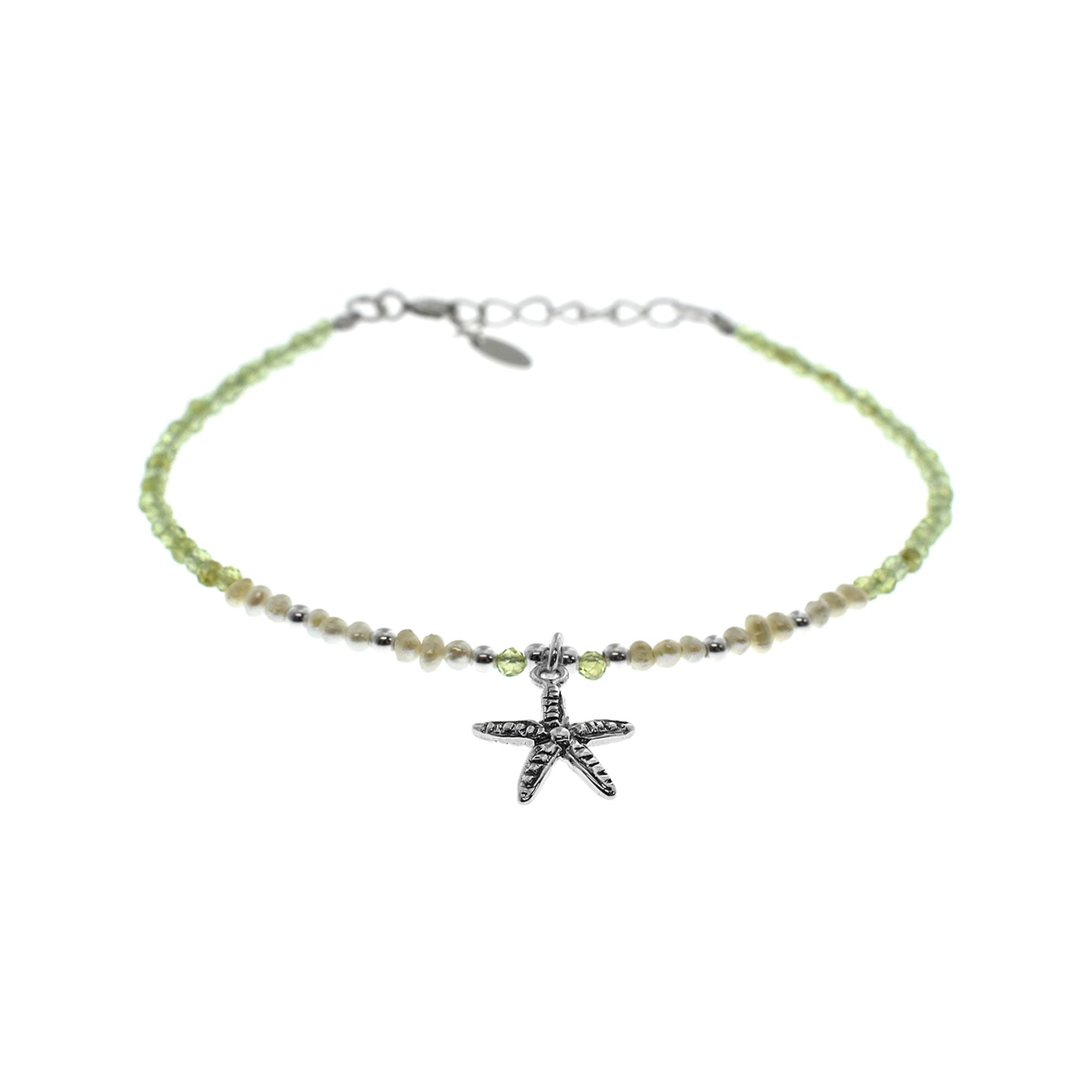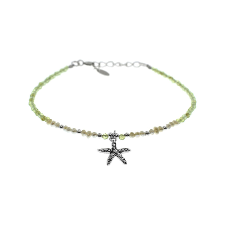 Peridot and freshwater pearl bracelet with silver starfish
