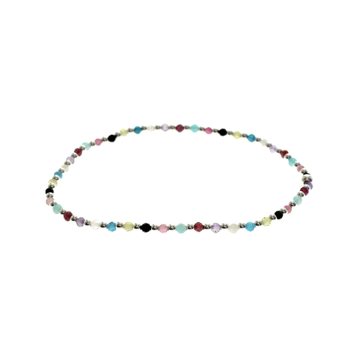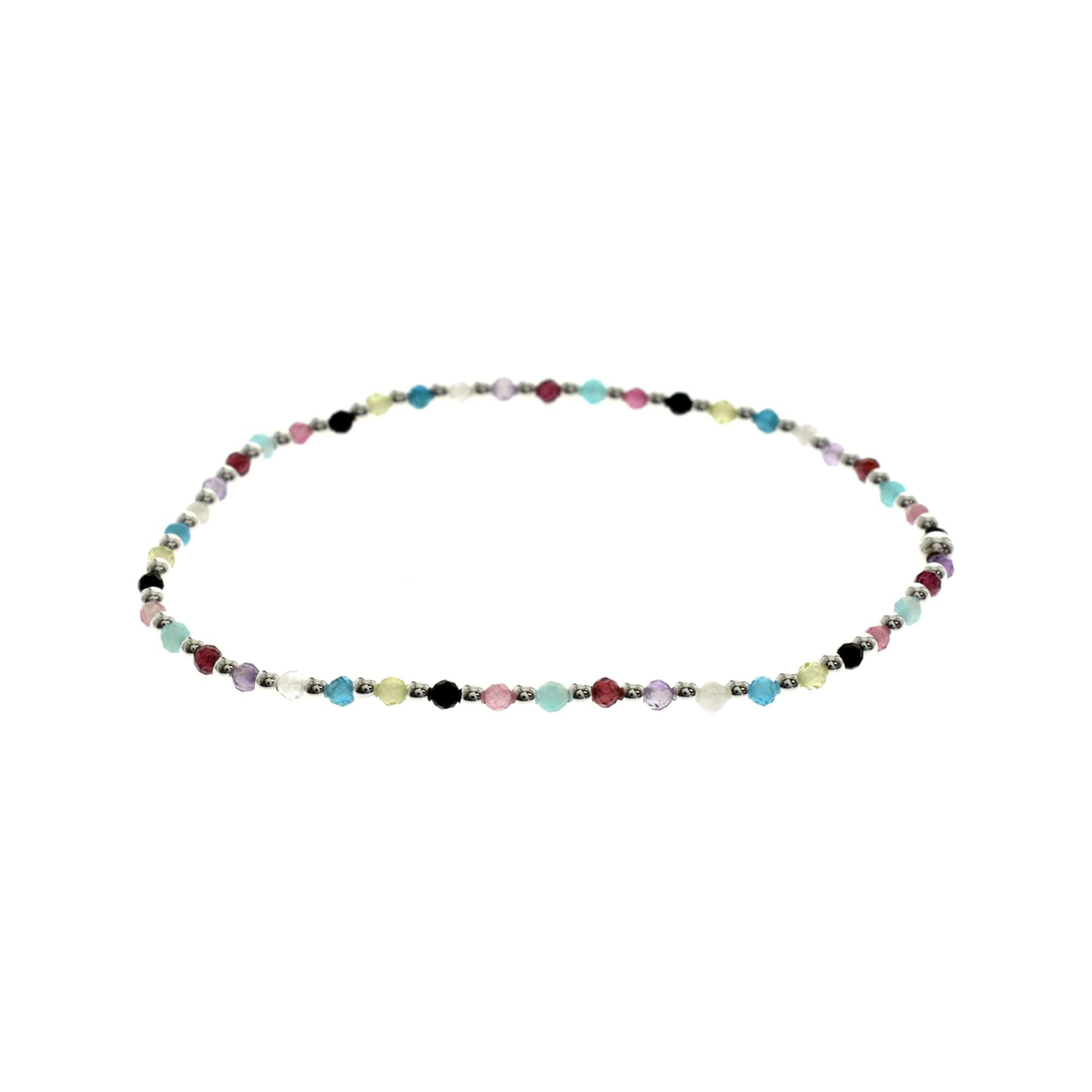 Stretch bracelet with multi-coloured gemstone and silver beads