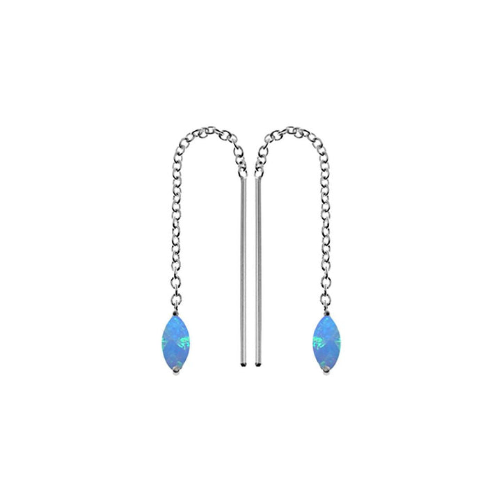 Marquis blue opalique silver pull through earrings
