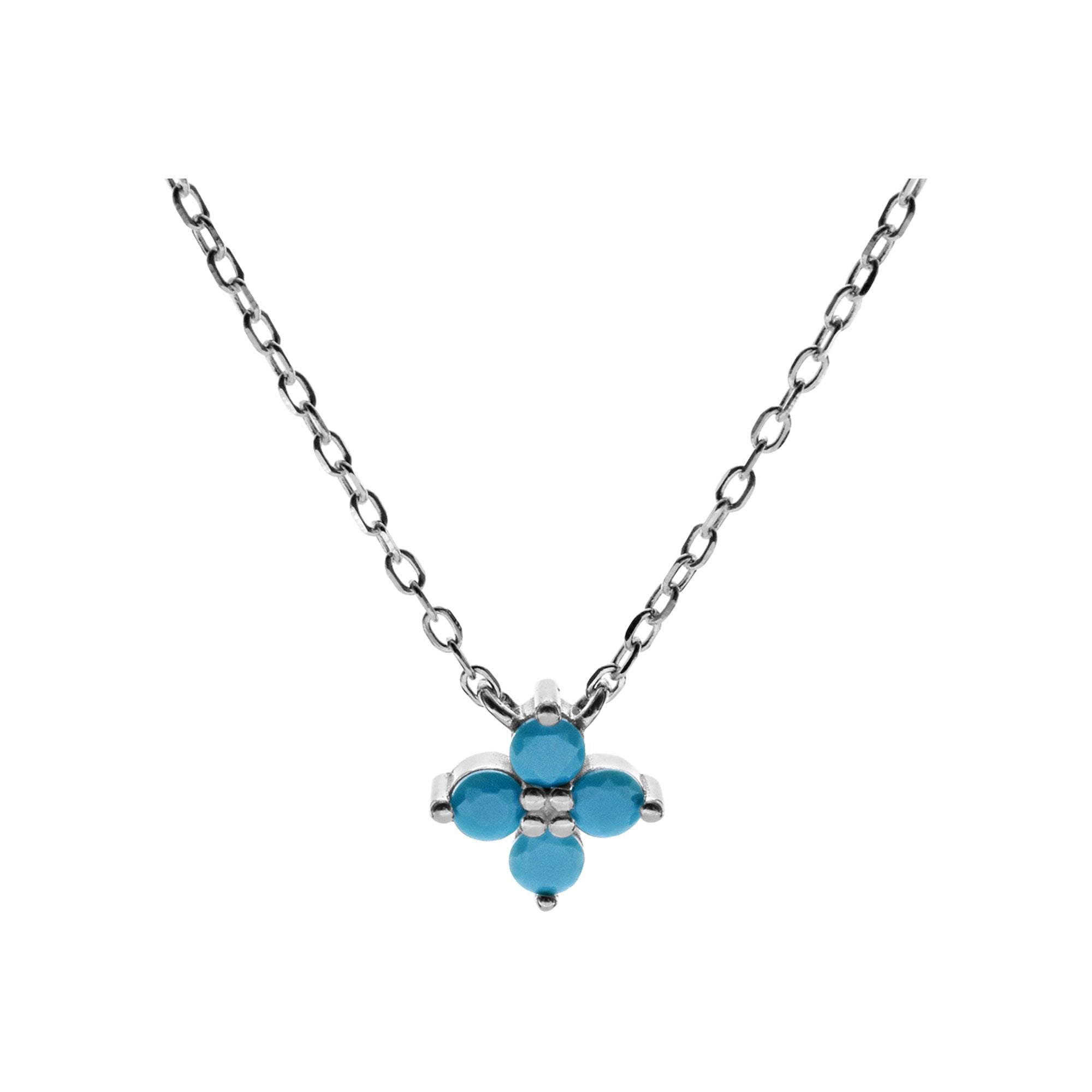 Four stone cluster necklet with faceted lab created turquoise claw set in sterling silver