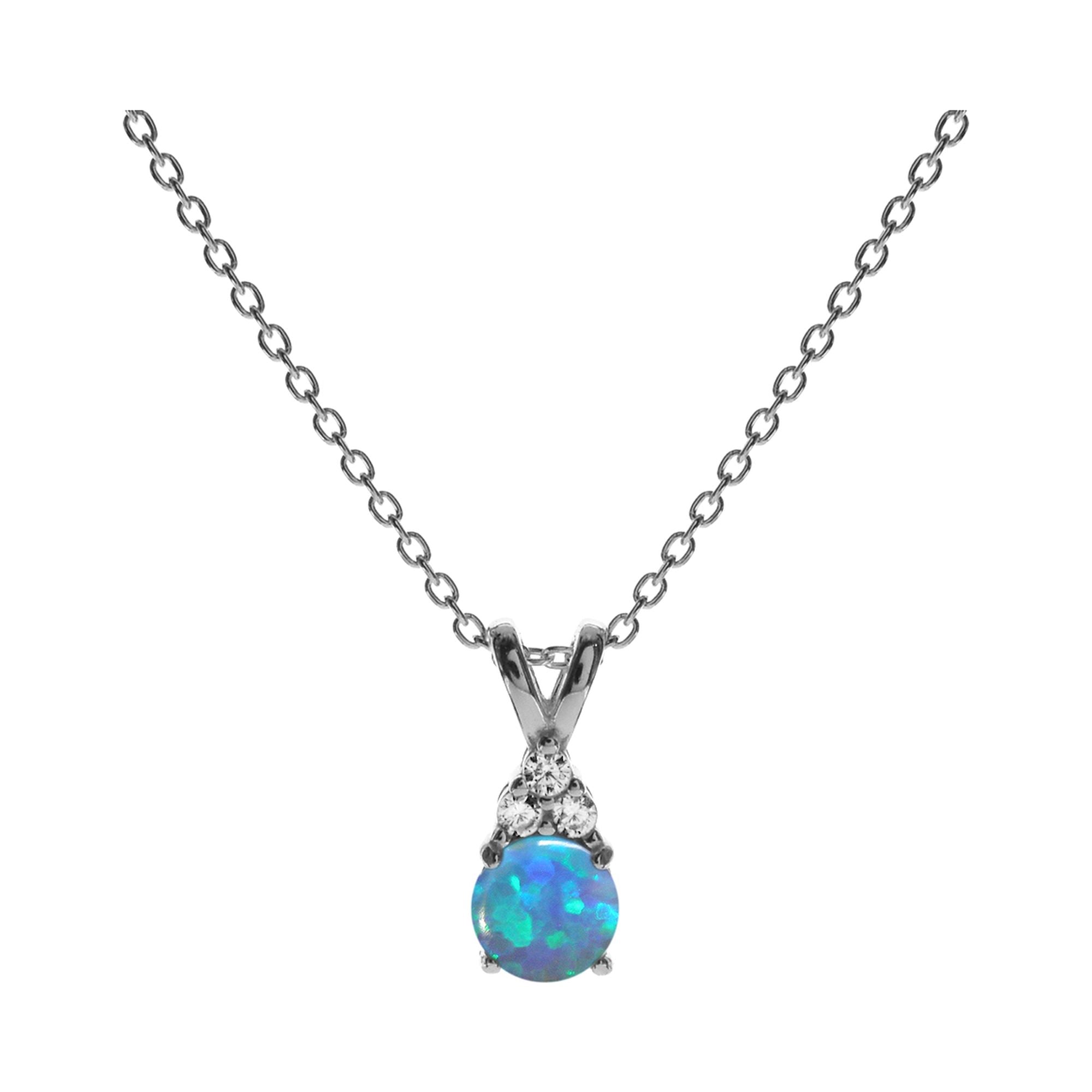 V' bale round blue opalique and silver necklace with cubic zirconia