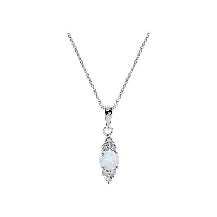 - Gemstone/s: White opalique (lab grown opal) and cubic zirconia