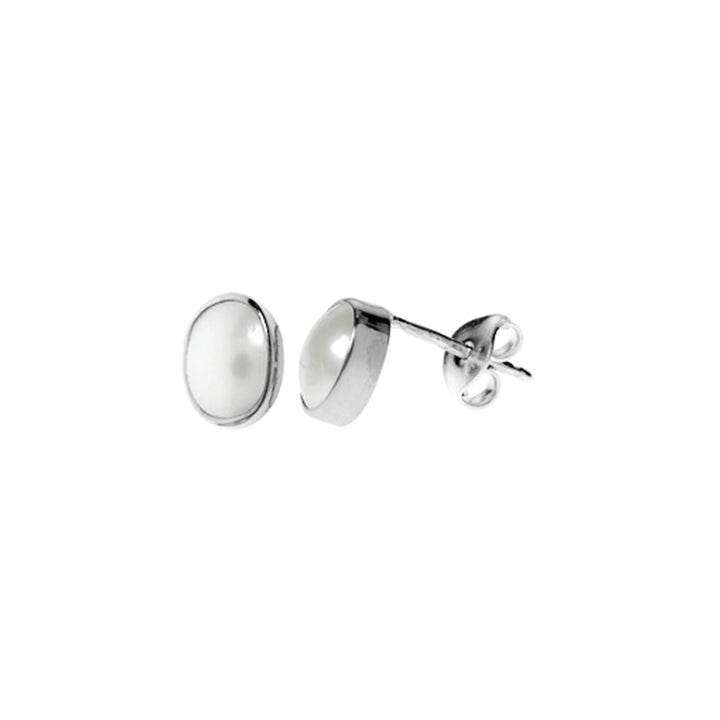 White Pearl Oval 6 x 4mm Cab Plain Stud