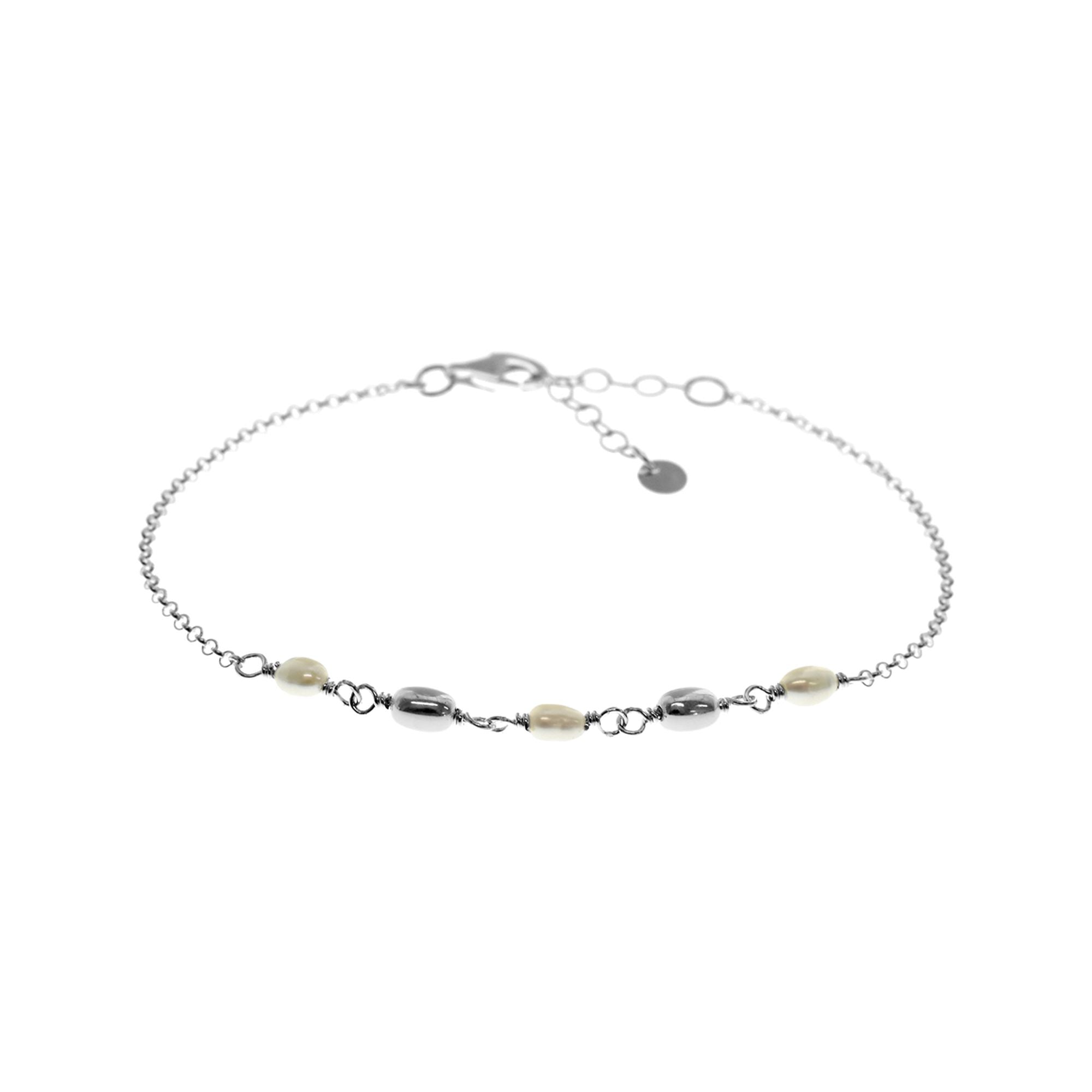 Freshwater rice pearl and silver nugget bead bracelet