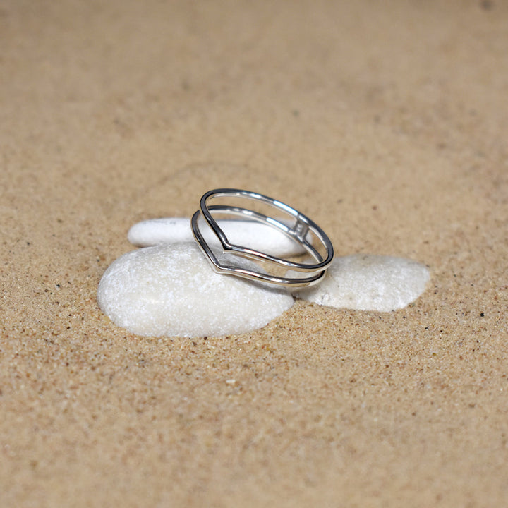 Double shallow wishbone silver ring