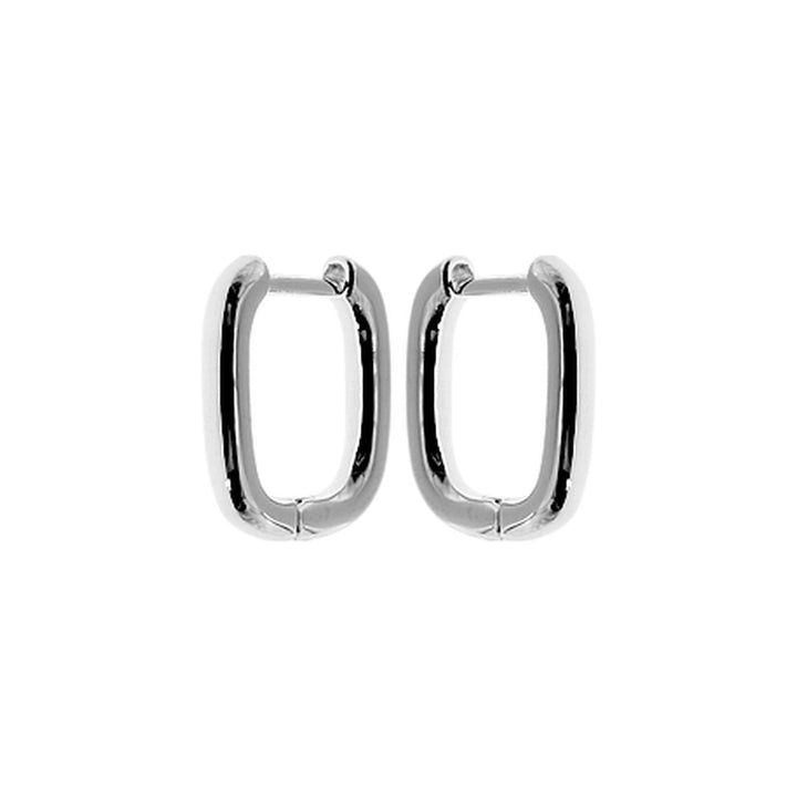 Sterling silver soft edged rectangular shaped hinged huggie hoop earrings
