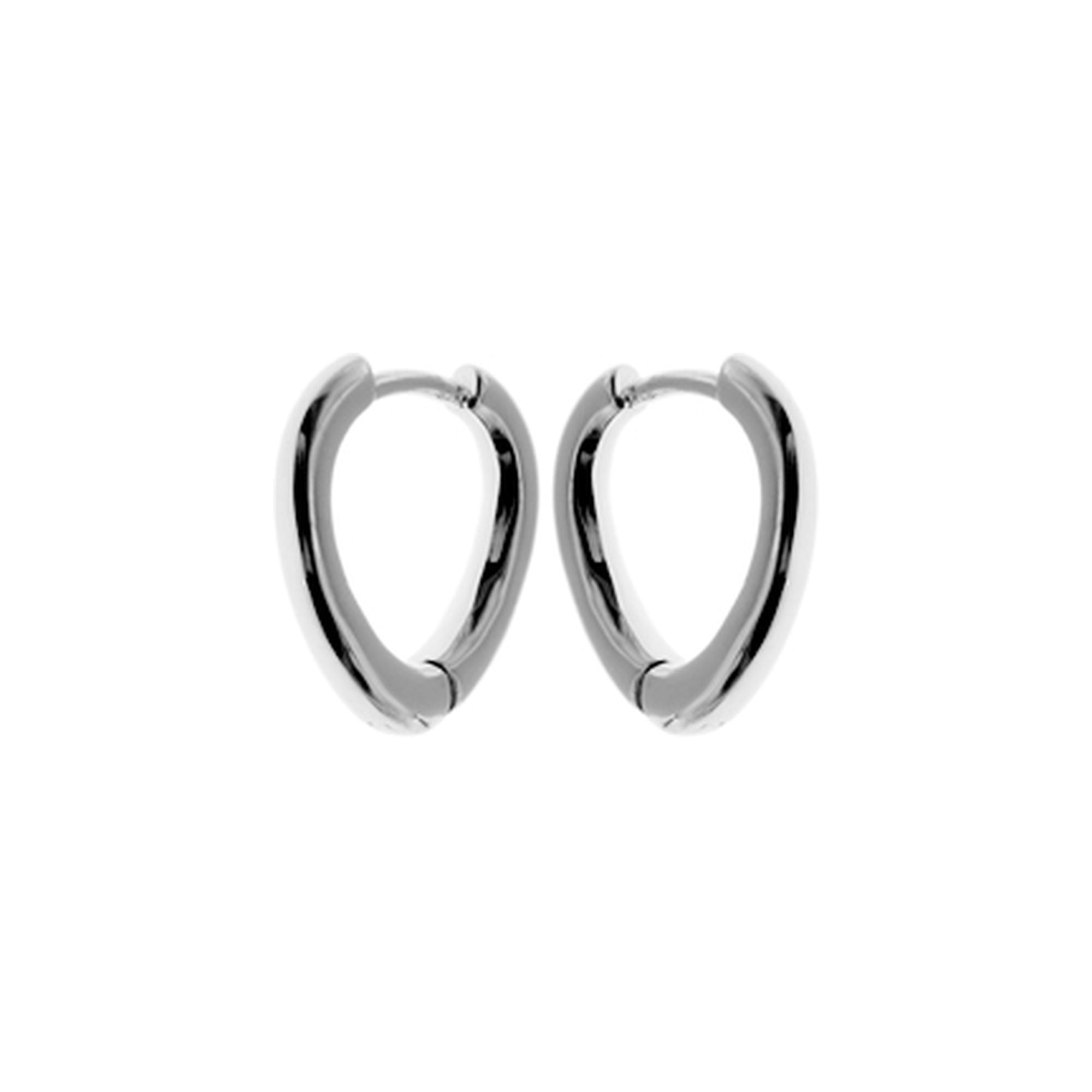 Sterling silver soft inverted teardrop shaped hinged huggie hoop earrings