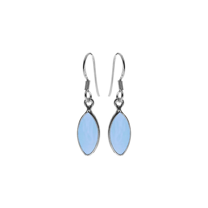 Blue chalcedony bezel set marquis drop earrings