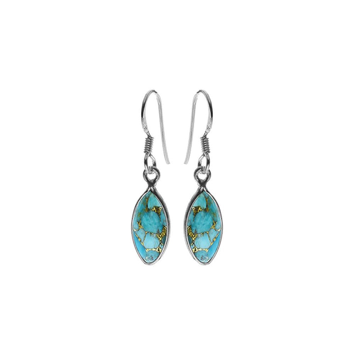 Blue mohave turquoise bezel set marquis drop earrings