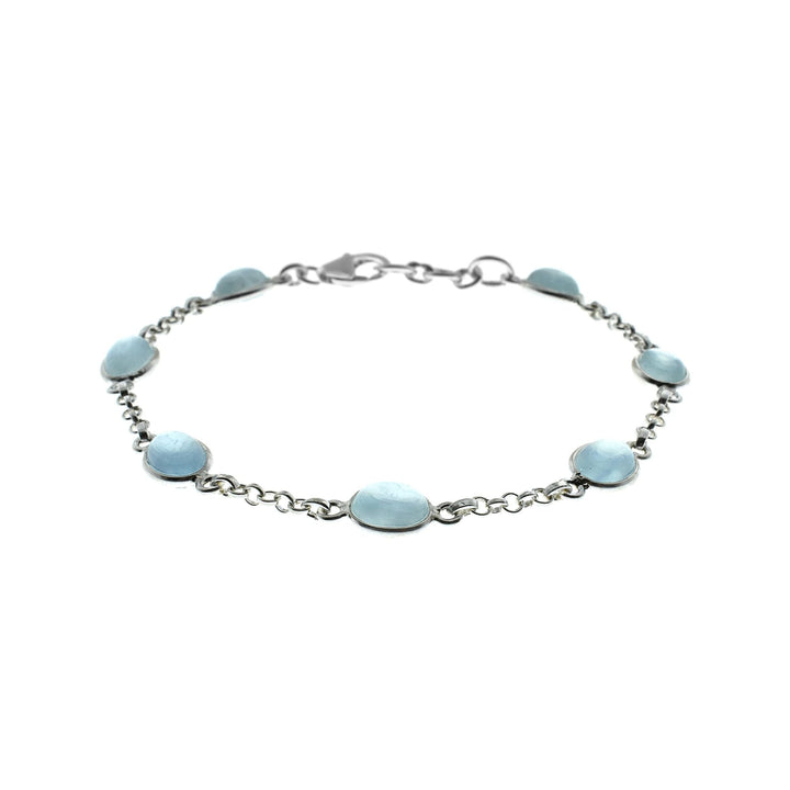 Fine bezel set and chain aquamarine bracelet