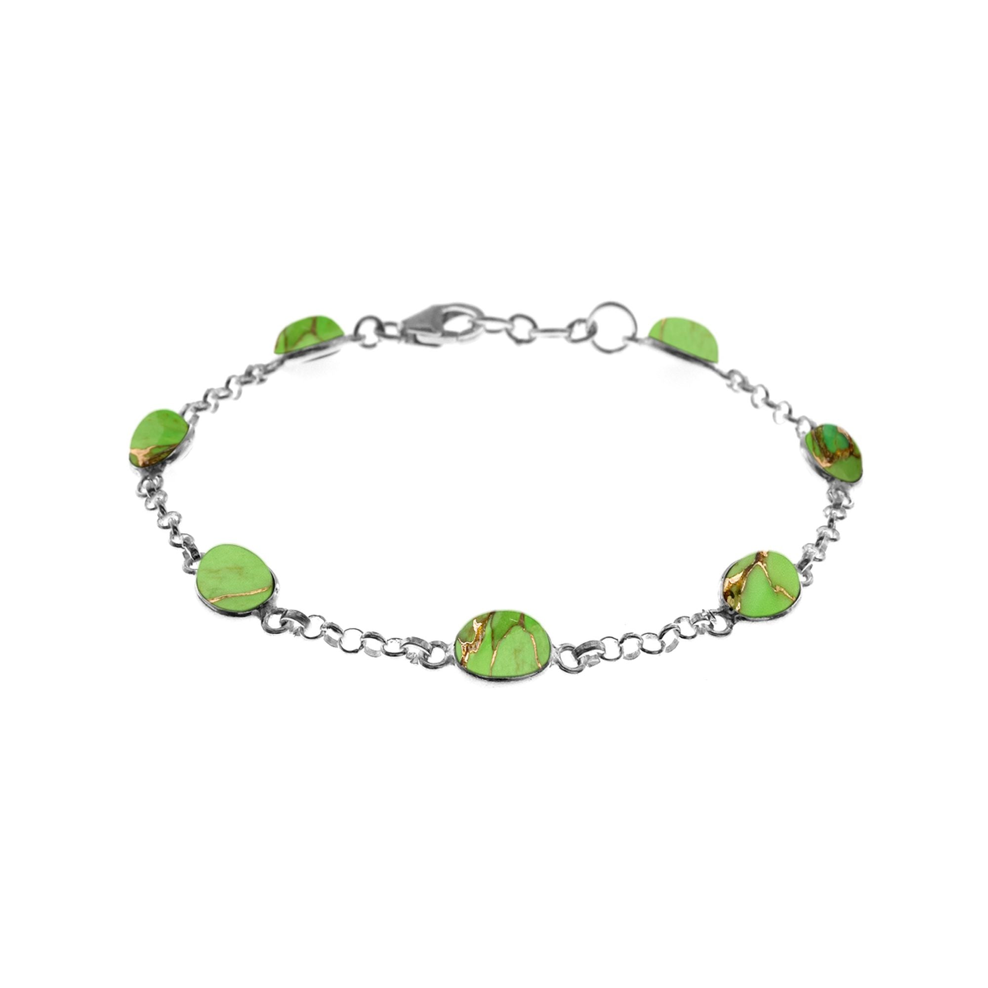 Fine bezel set seven stone green mohave turquoise bracelet