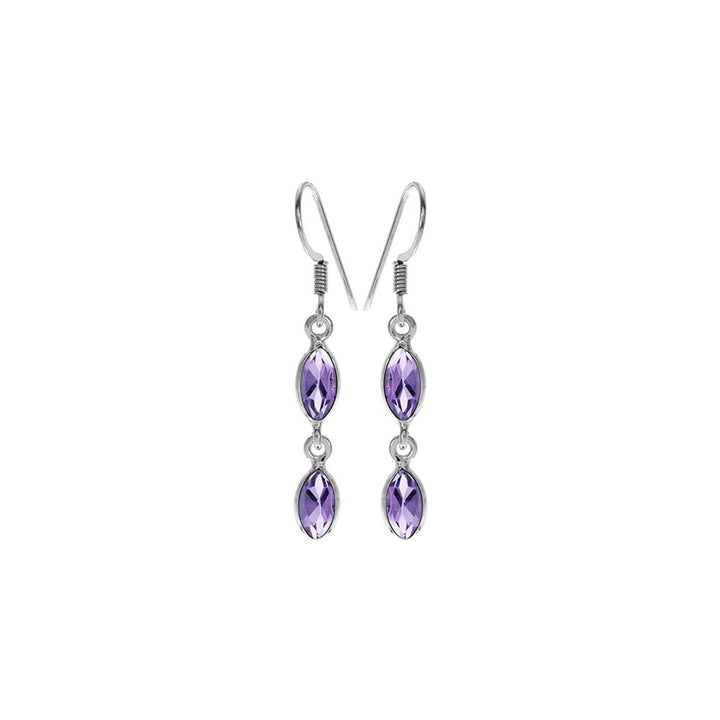 Double drop marquis faceted amethyst and silver earrings
