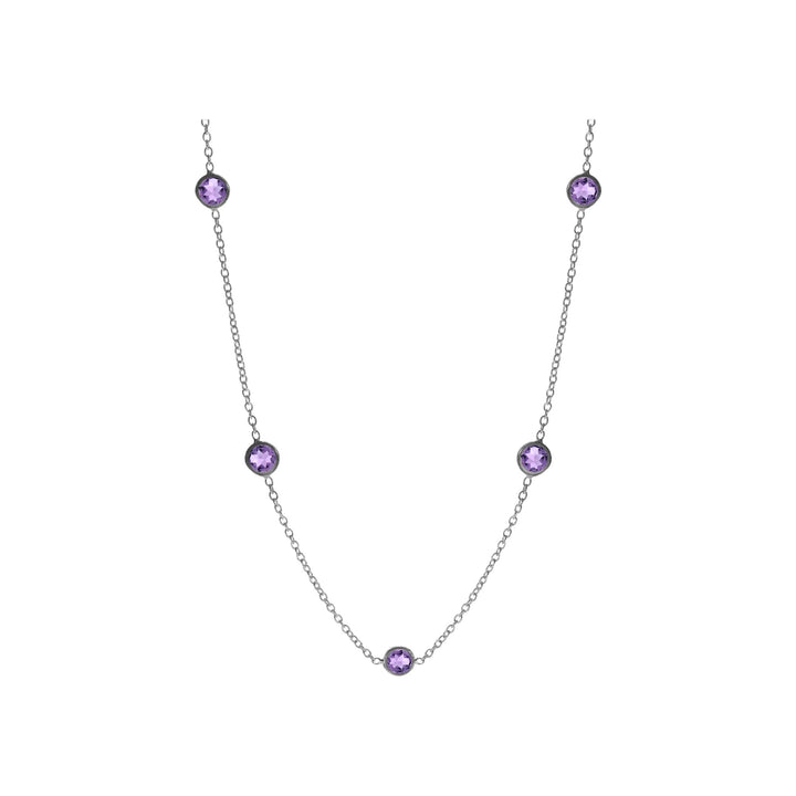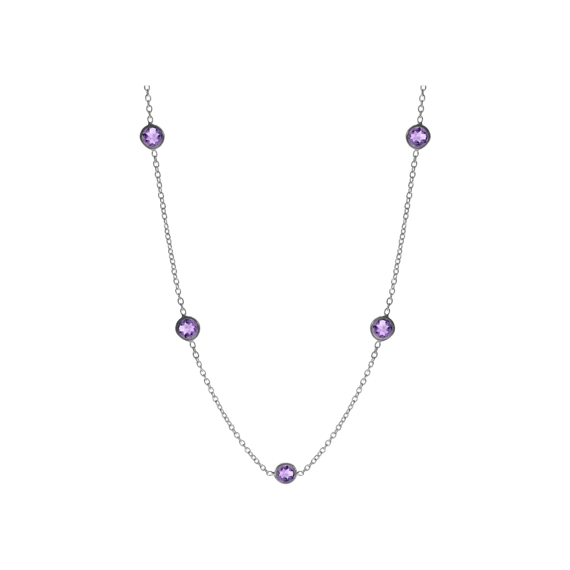 Five stone round faceted amethyst delicate chain necklace