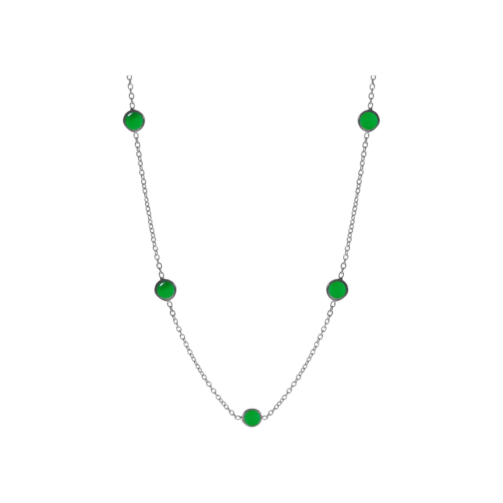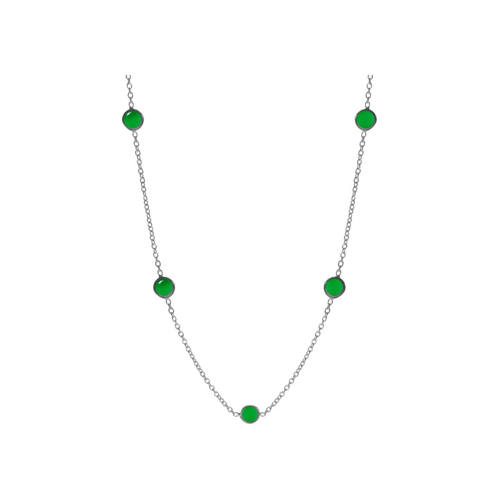 Five stone round green agate delicate chain necklace