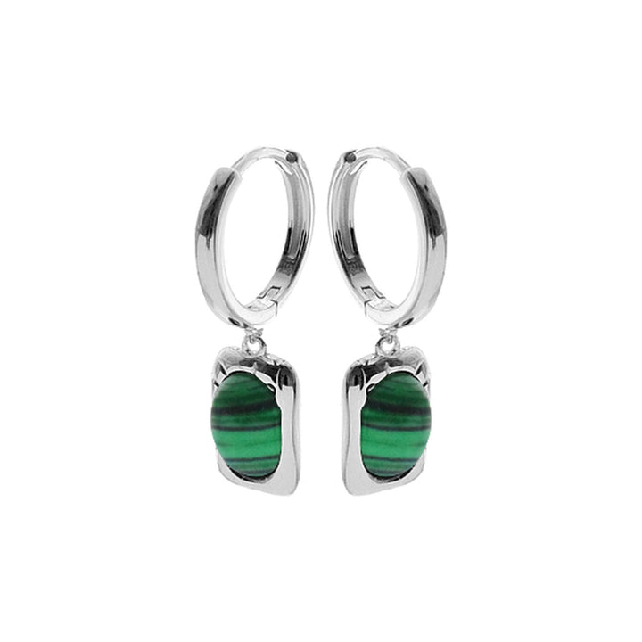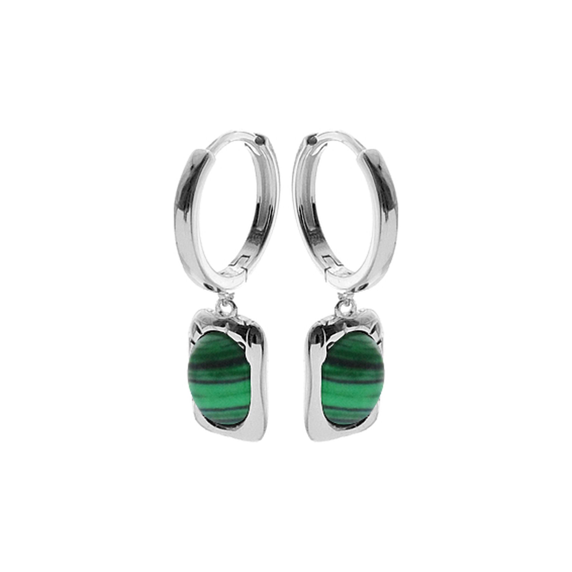 Plain huggies with malachite in detailed rectangular frame