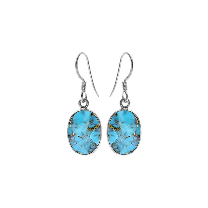 Simple 10x14mm oval blue mohave turquoise and silver earrings