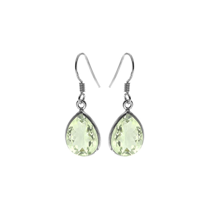 Teardrop bezel set green amethyst earrings