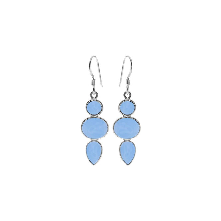 Mixed shapes three stone blue chalcedony earrings