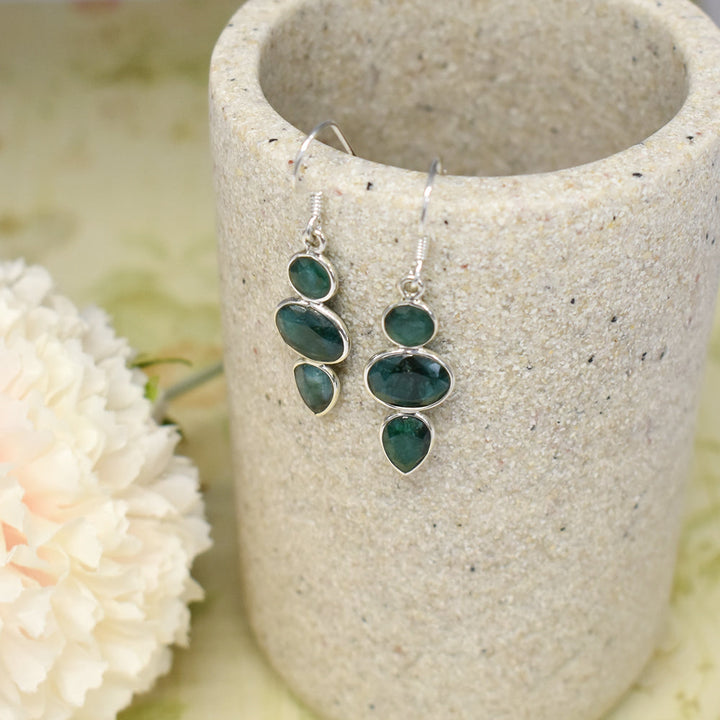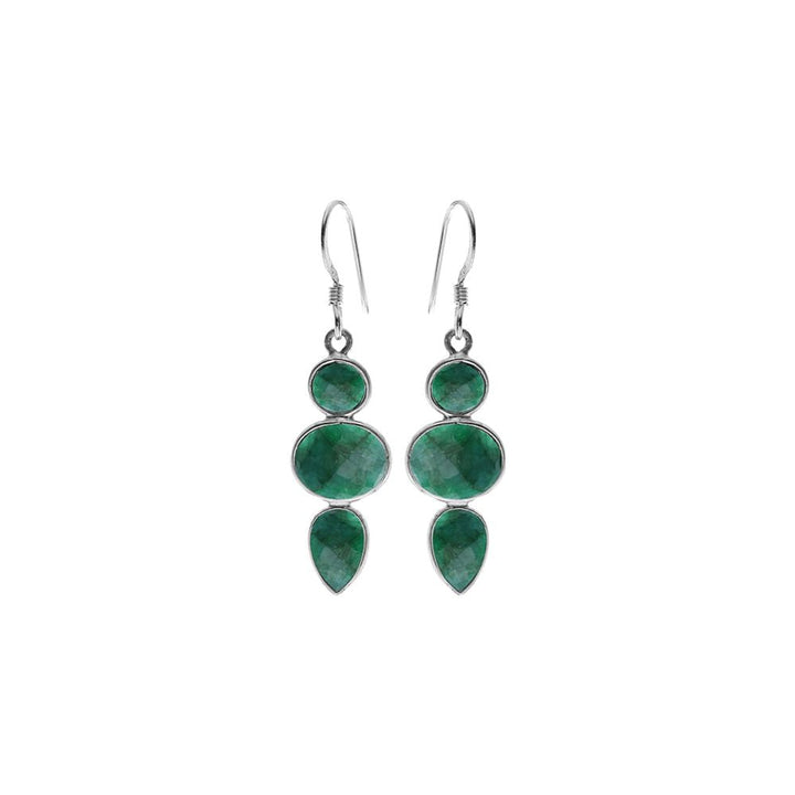 Mixed shapes three stone emerald quartz earrings