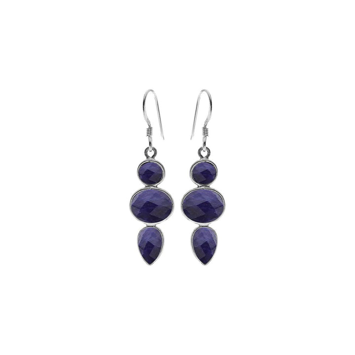 Mixed shapes three stone sapphire quartz earrings