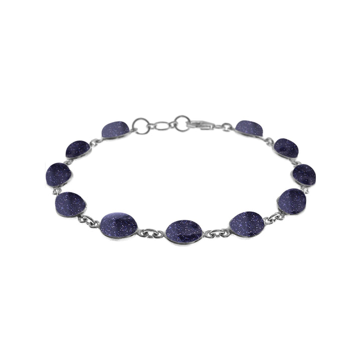 Blue goldstone eleven oval stone bezel set bracelet